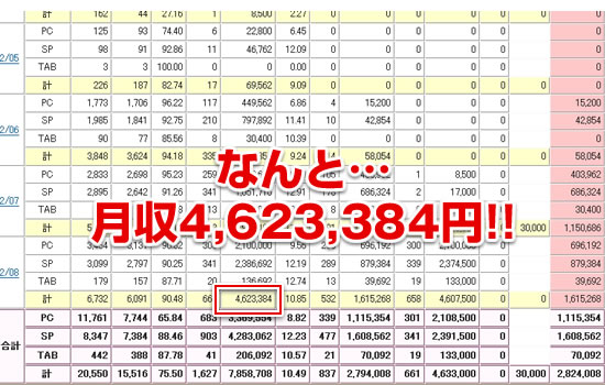 現在1日のアクセス数は、アフィリエイトブログとしては